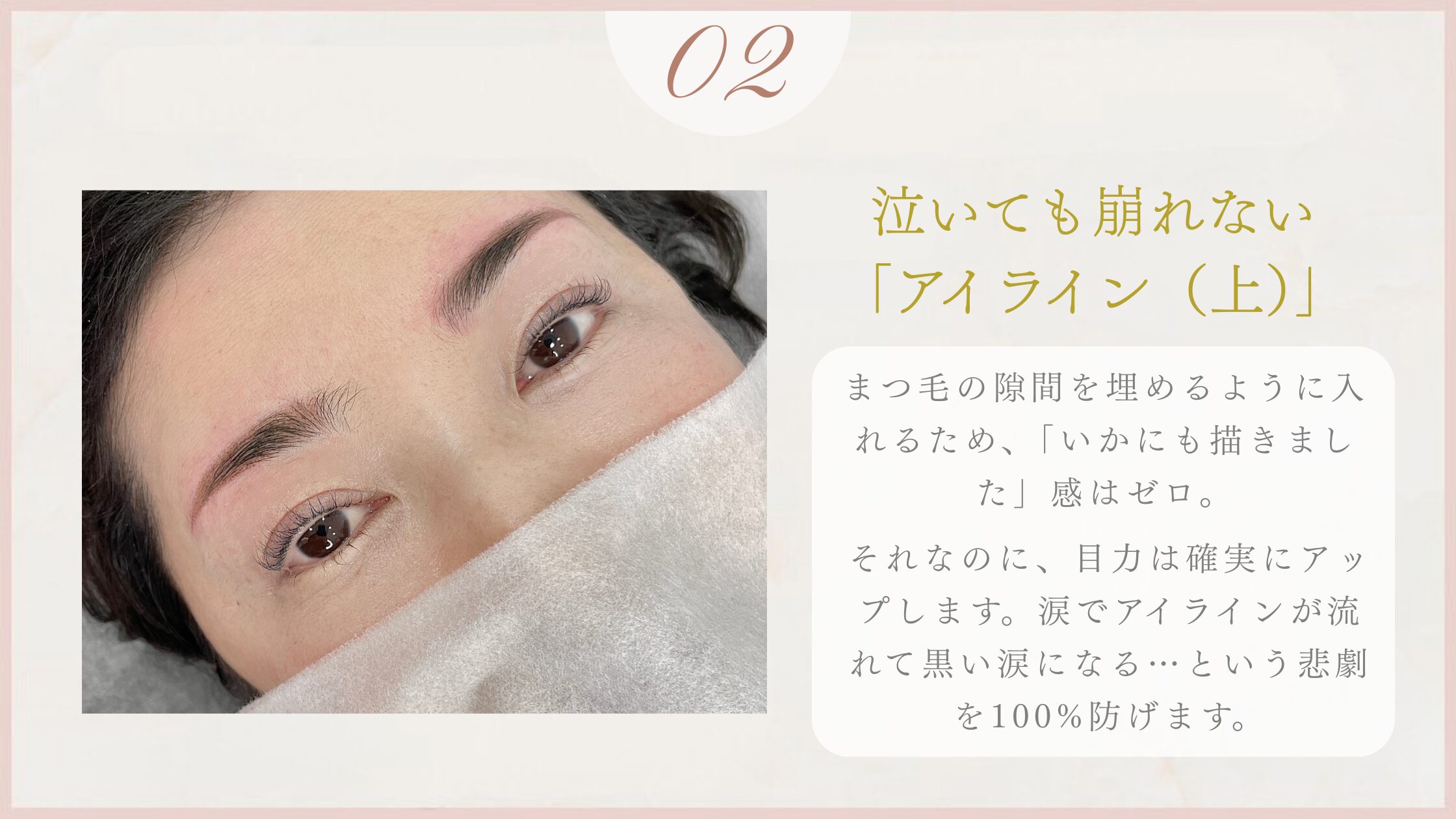 アートメイクなら、どれだけ泣いても、ハンカチで拭っても、メイク崩れはゼロ。